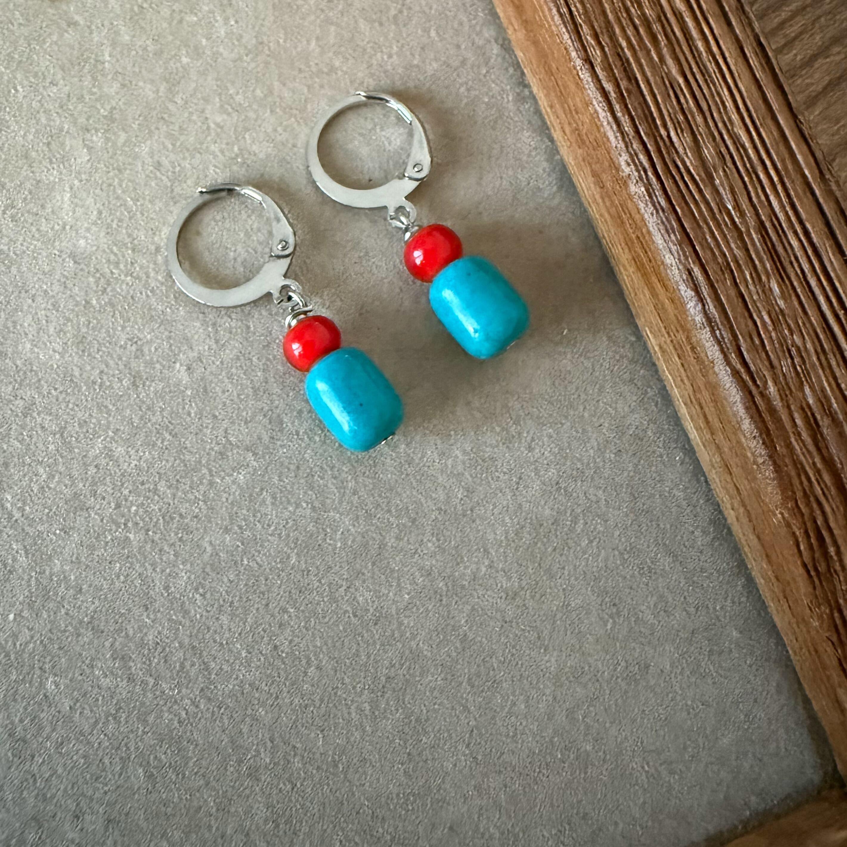 【サージカルステンレス:シルバー】ホワイトハーツビーズレッド×ターコイズ ピアス