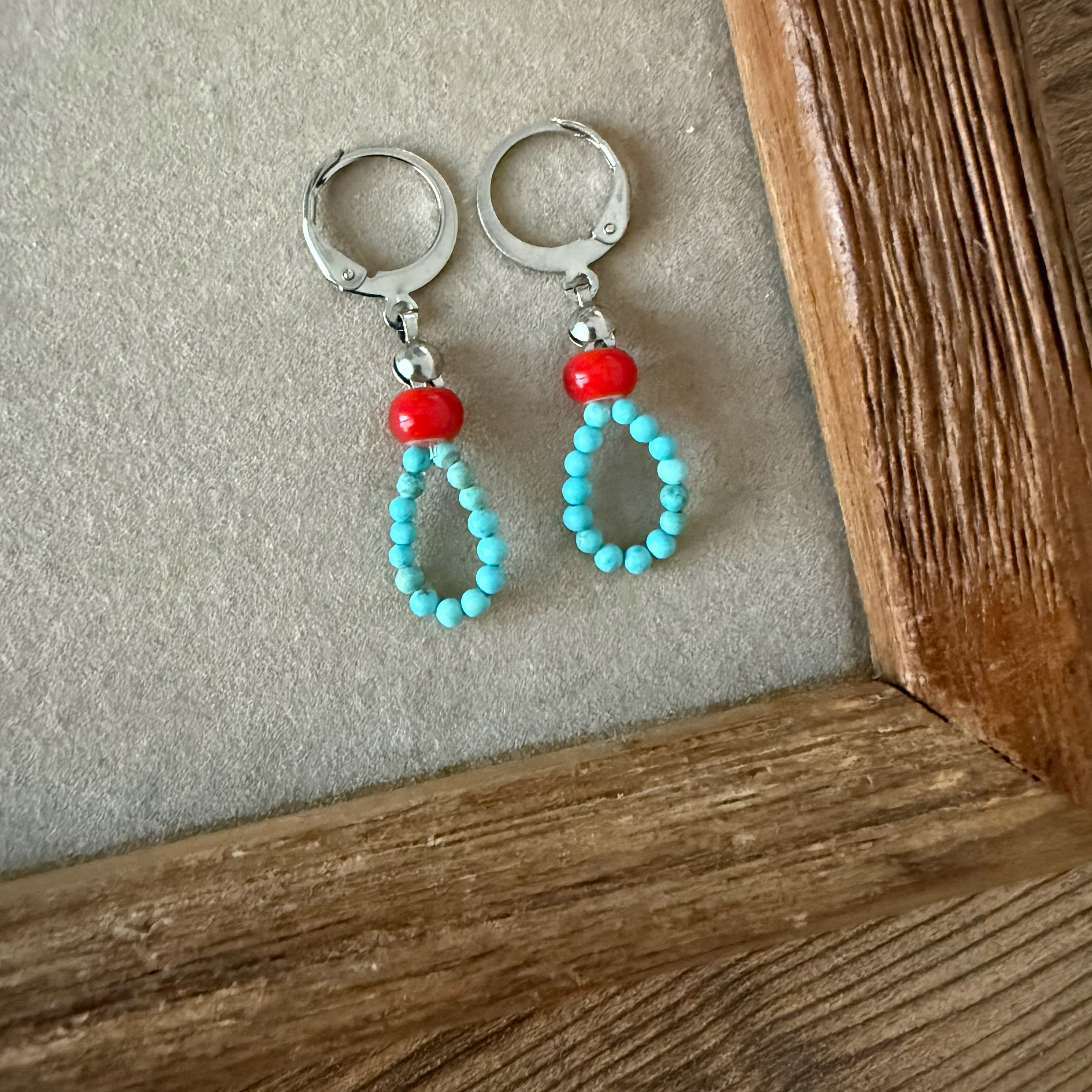 【サージカルステンレス:シルバー】ホワイトハーツビーズレッド×ターコイズ ピアス