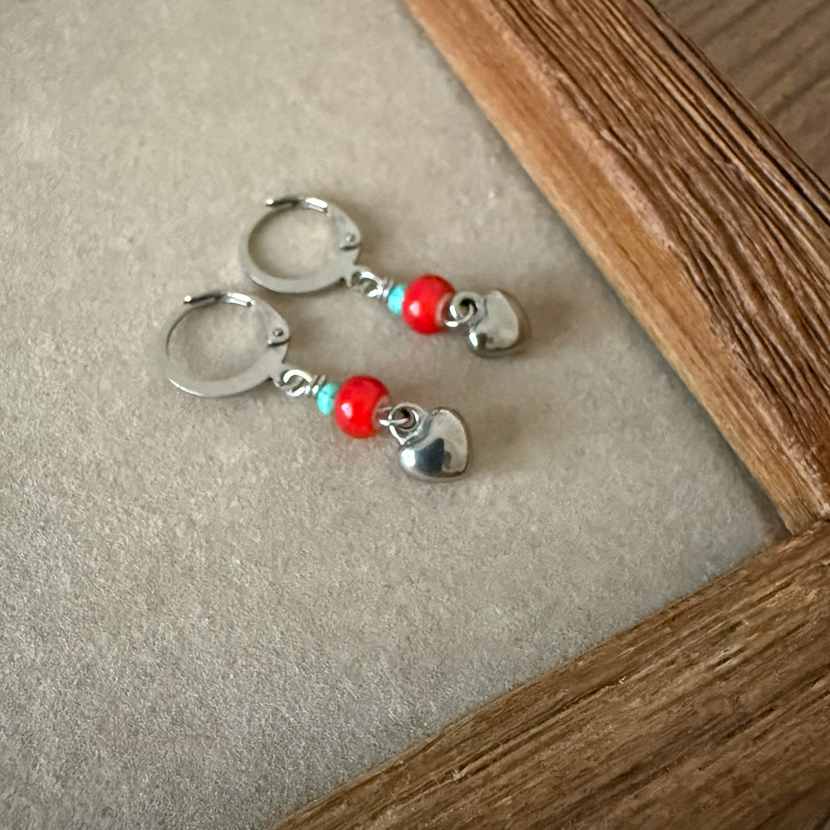 【サージカルステンレス:シルバー】ホワイトハーツビーズレッド×ターコイズ ピアス