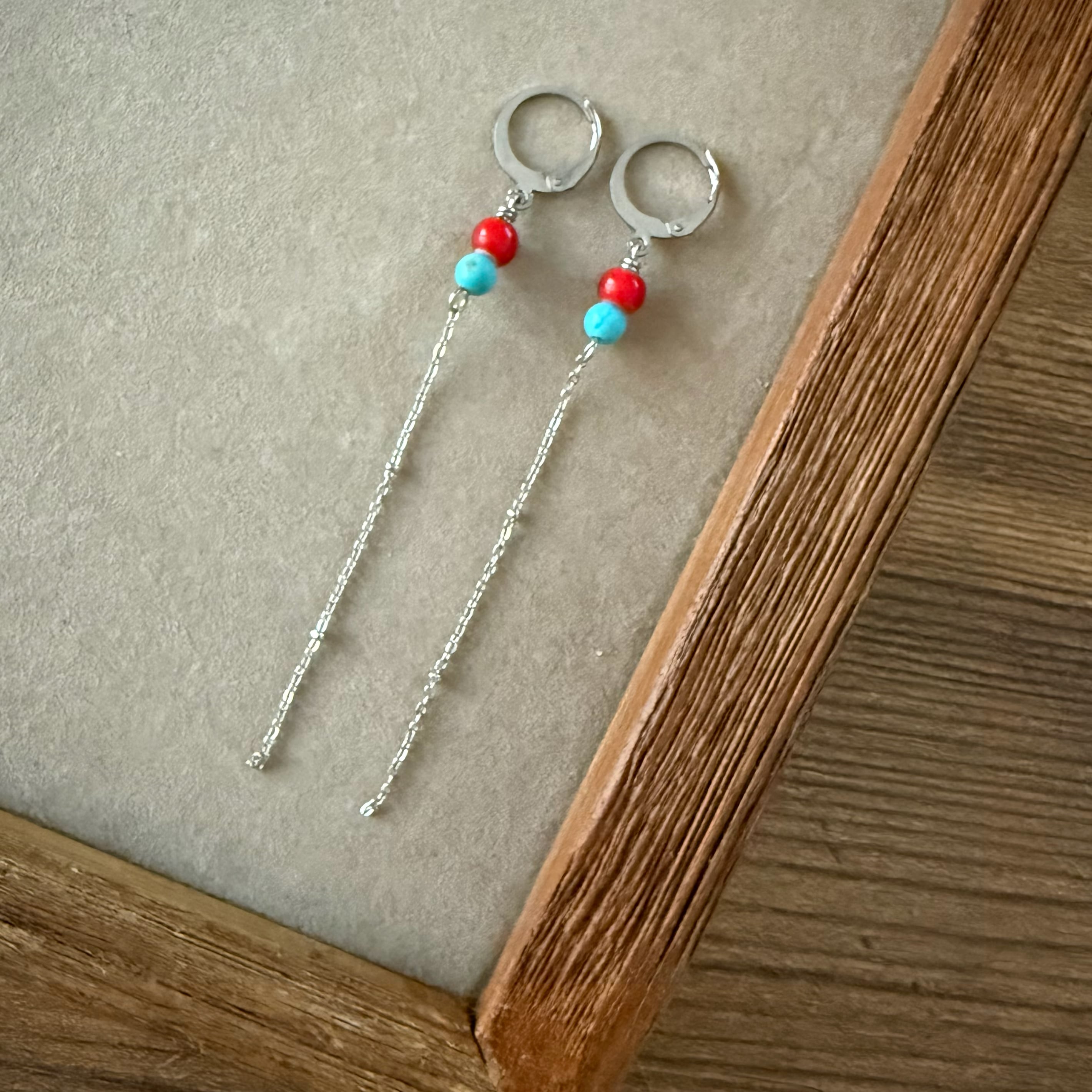 【サージカルステンレス:シルバー】ホワイトハーツビーズレッド×ターコイズ ピアス