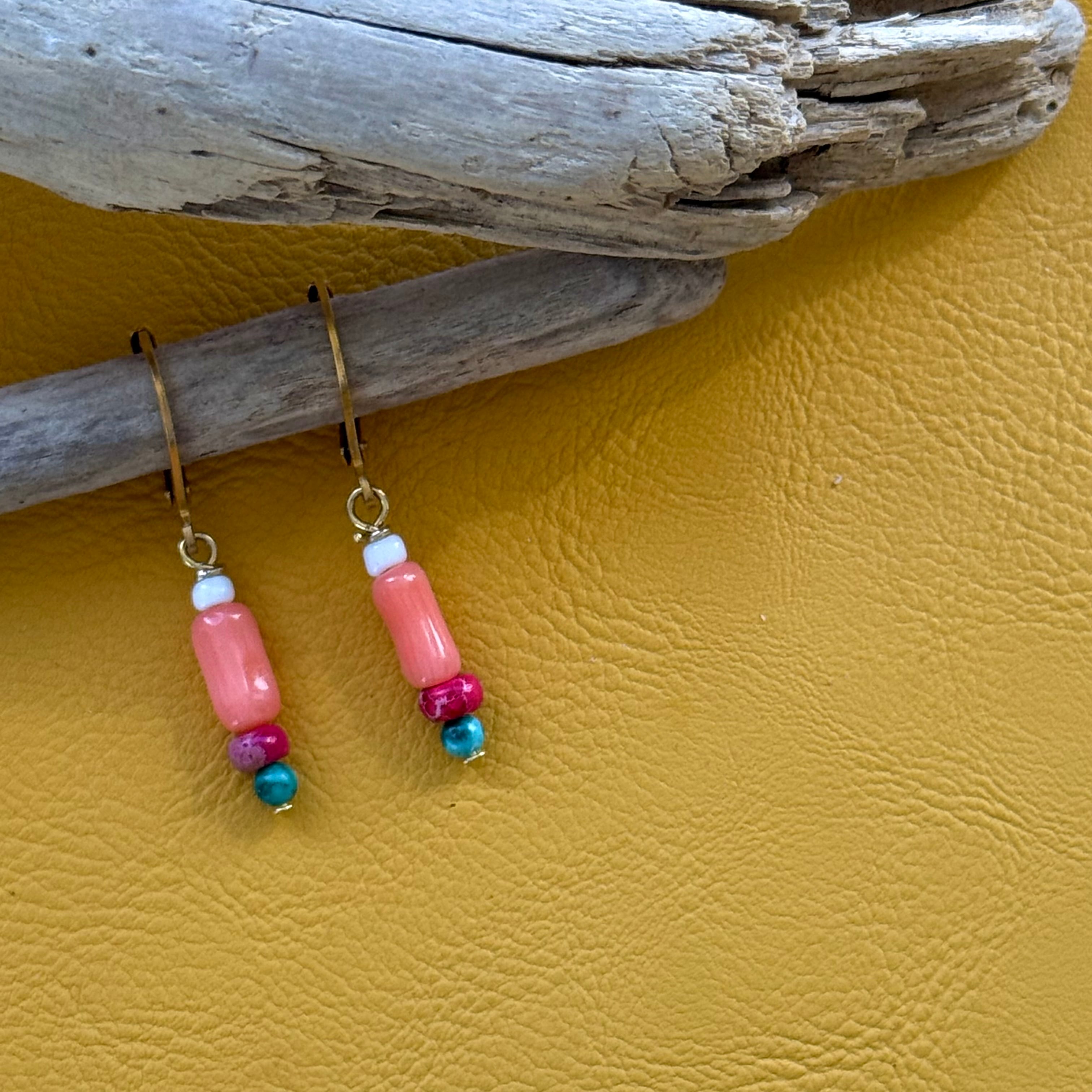 NC26027【サージカルステンレス:ゴールド】珊瑚×ターコイズ ピアス