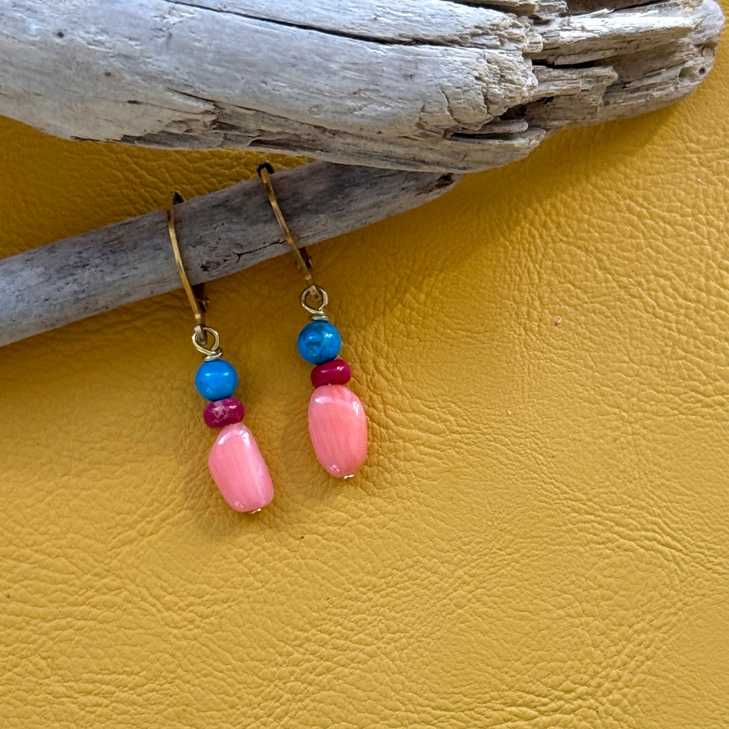 NC26028【サージカルステンレス:ゴールド】珊瑚×ターコイズ ピアス