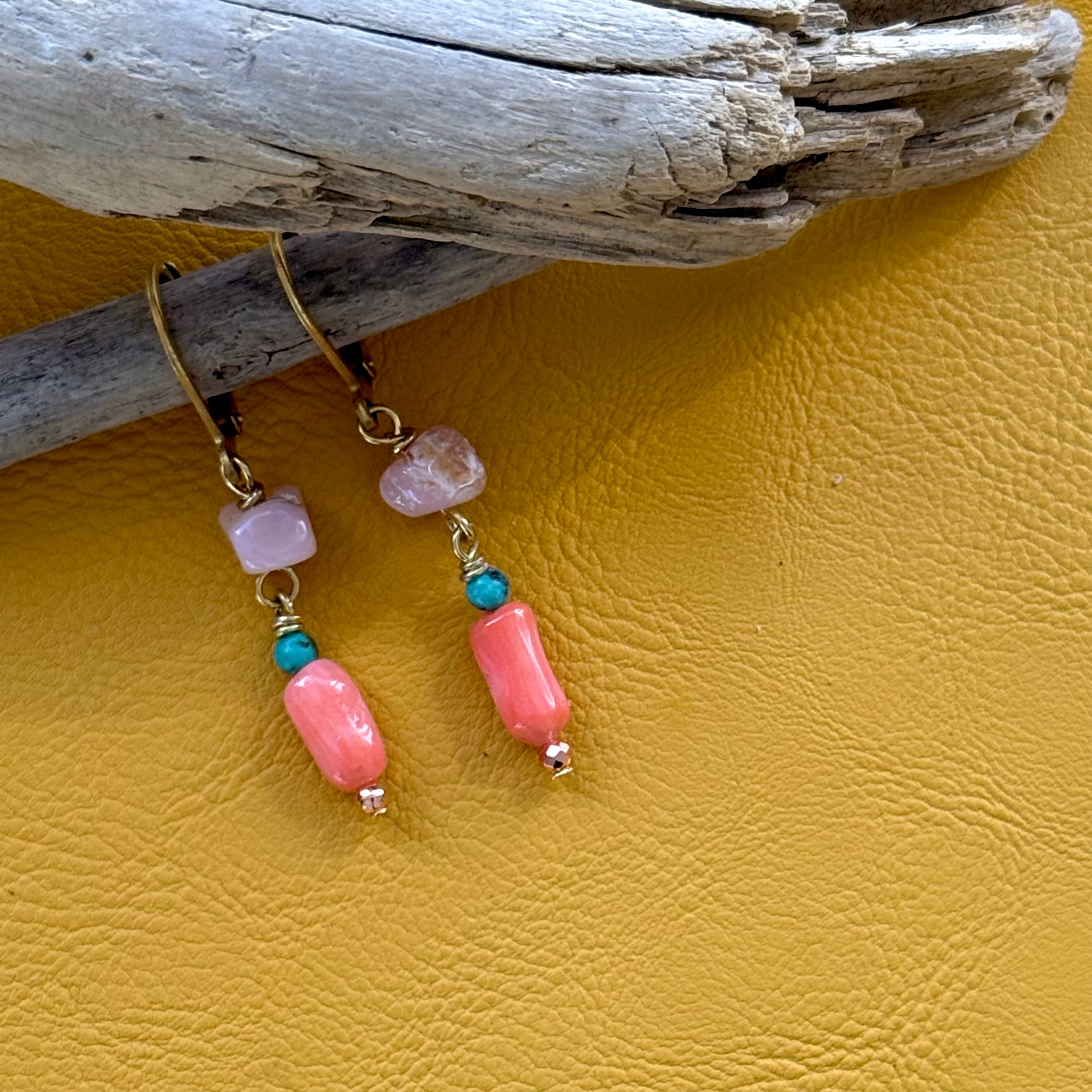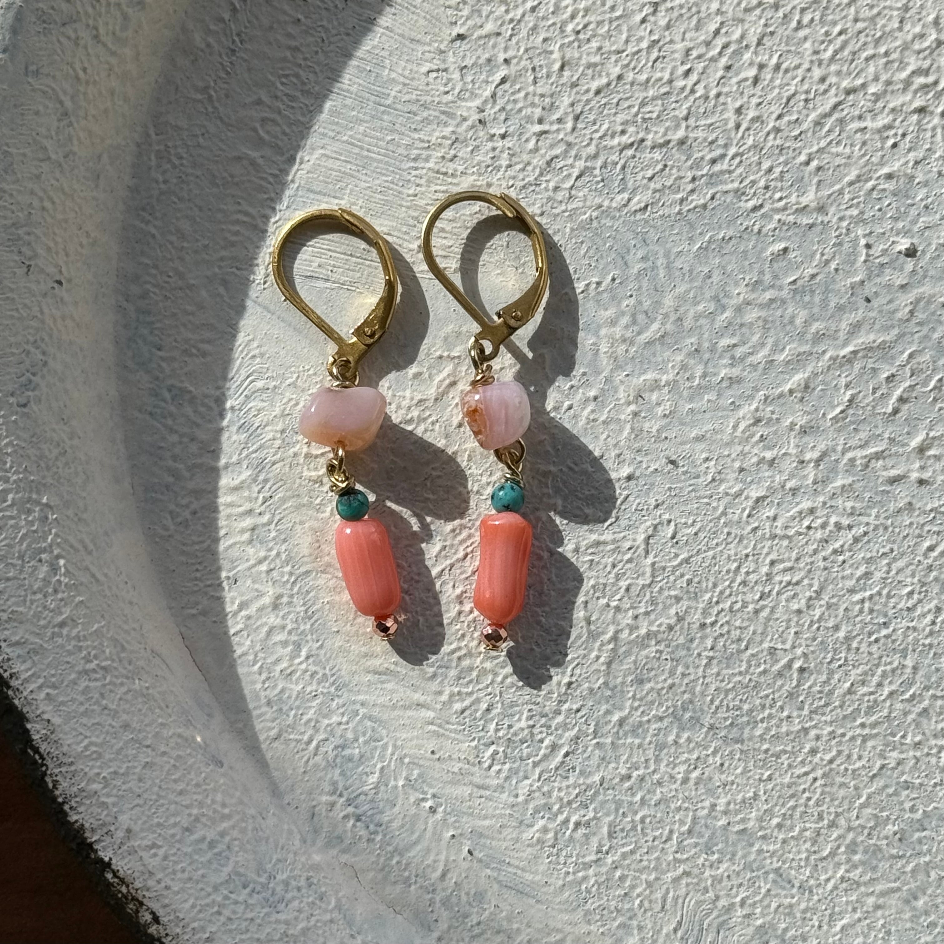 NC26030【サージカルステンレス:ゴールド】ピンクオパール×珊瑚×ターコイズ ピアス