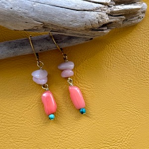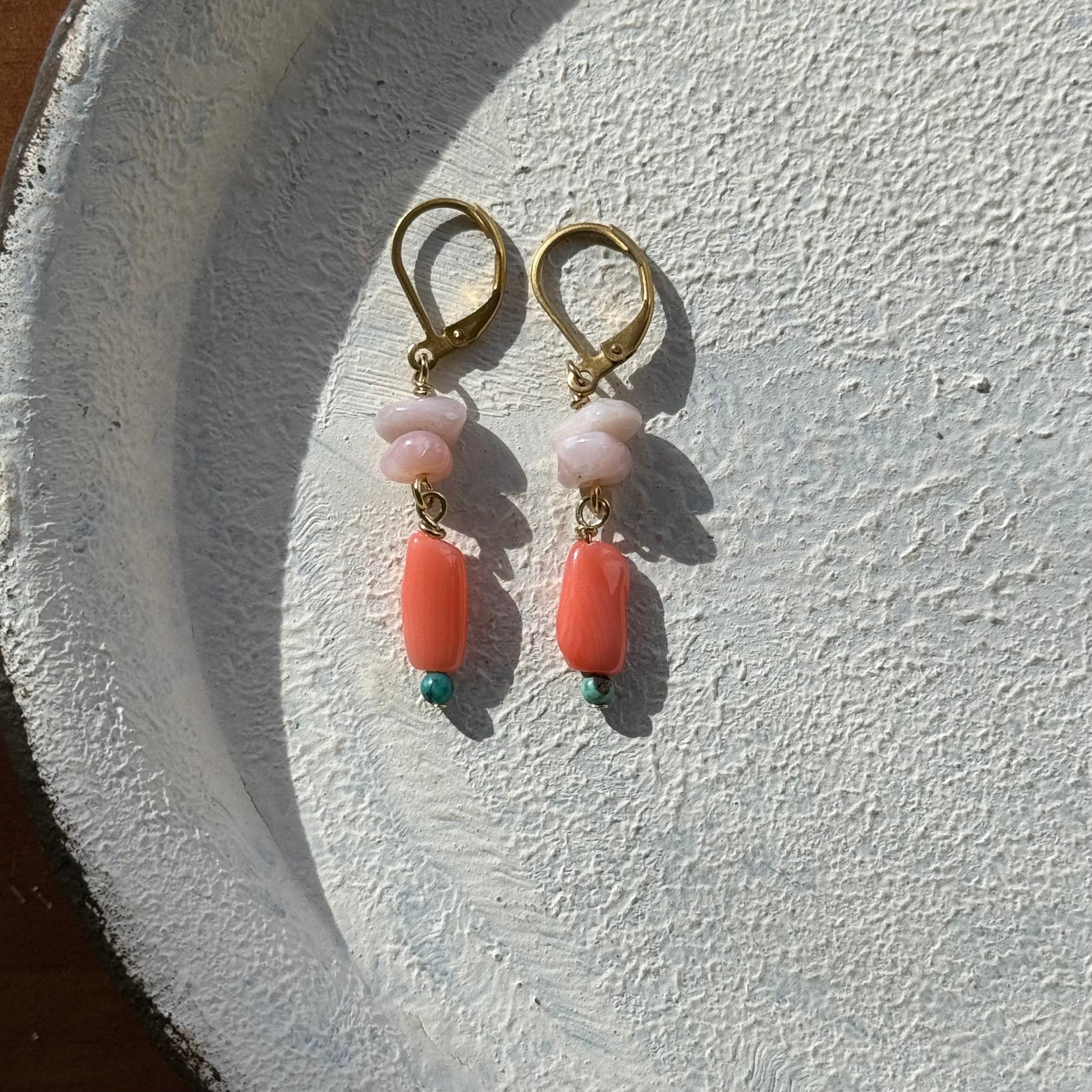 NC26032【サージカルステンレス:ゴールド】ピンクオパール×珊瑚×ターコイズ ピアス