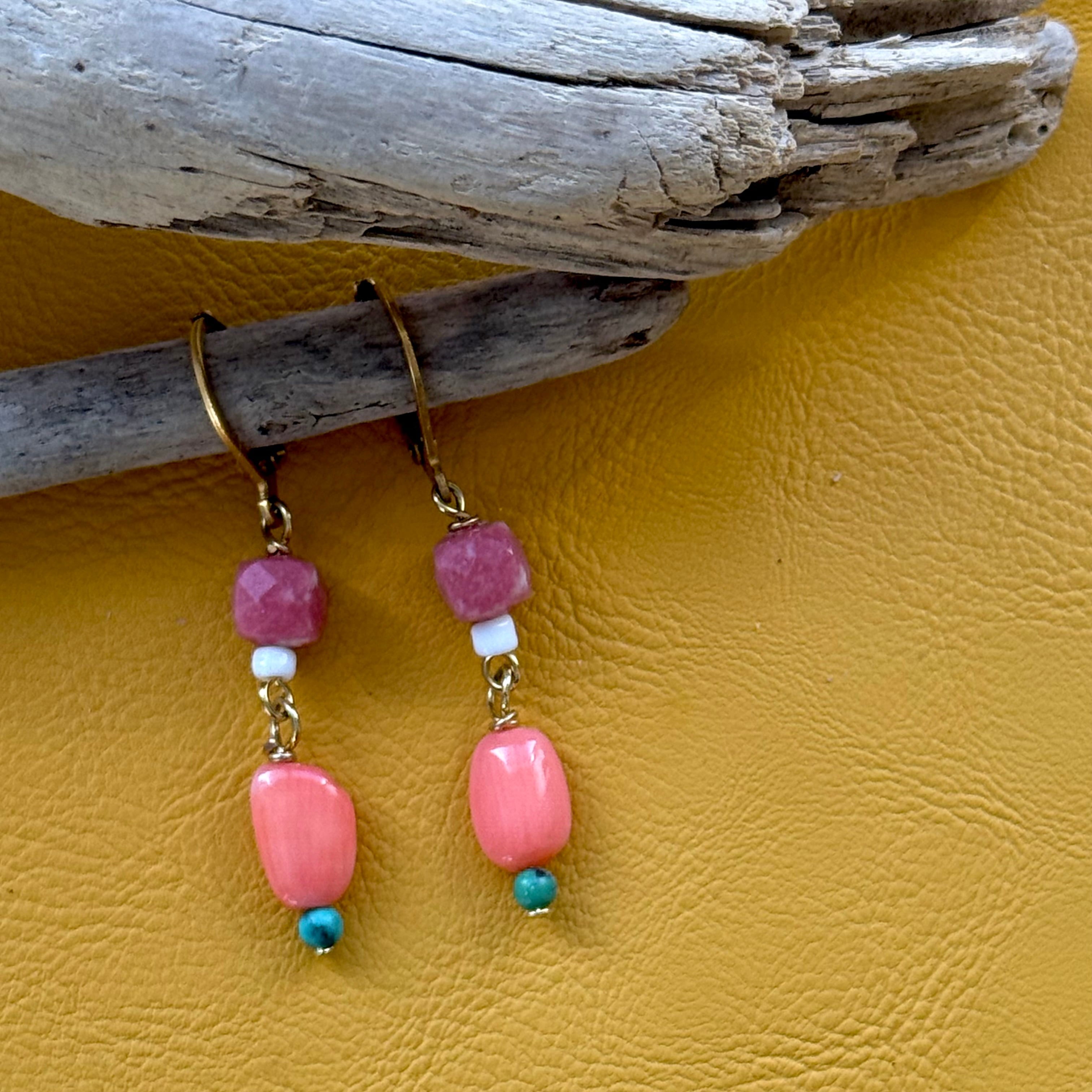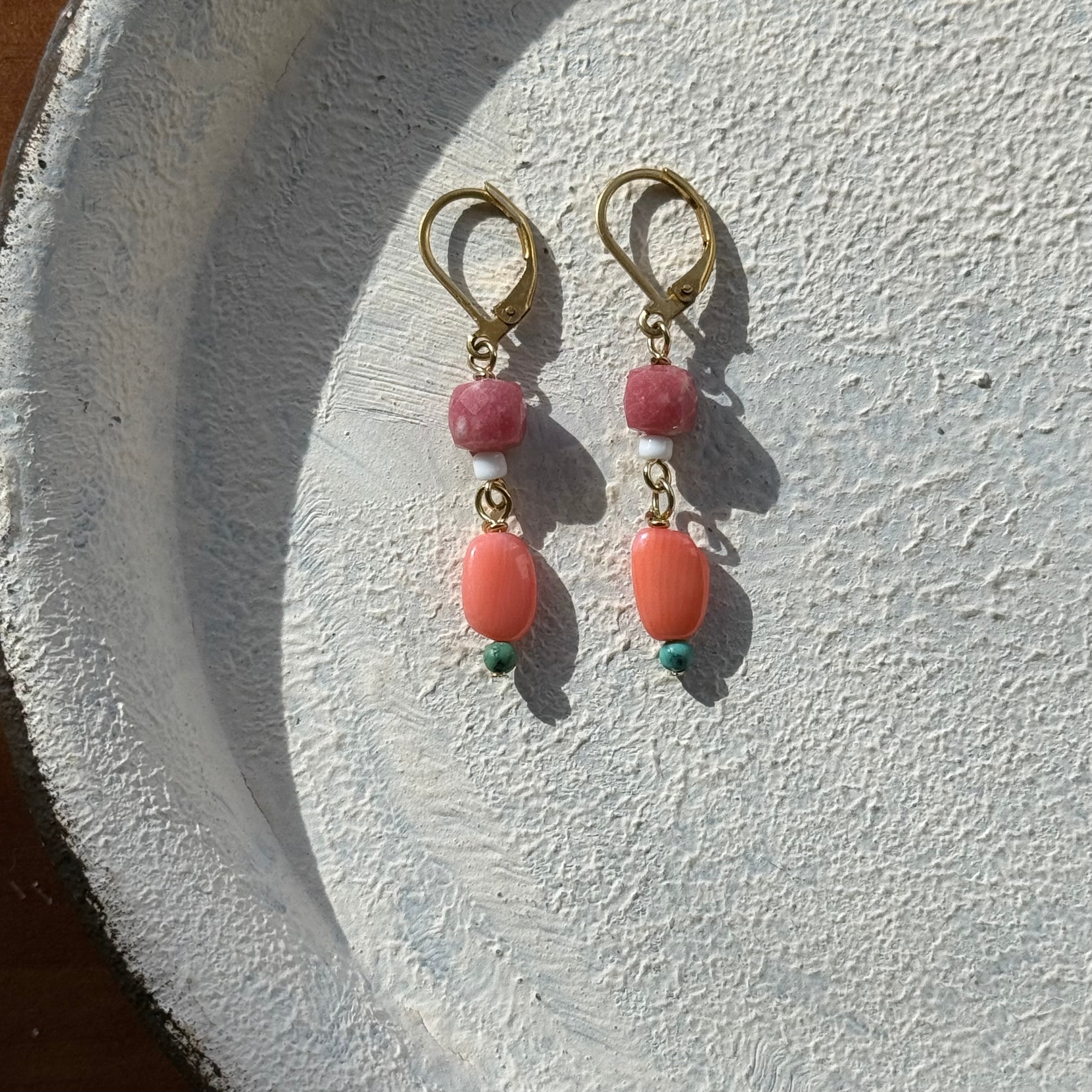 NC26033【サージカルステンレス:ゴールド】チューライト×珊瑚×ターコイズ ピアス