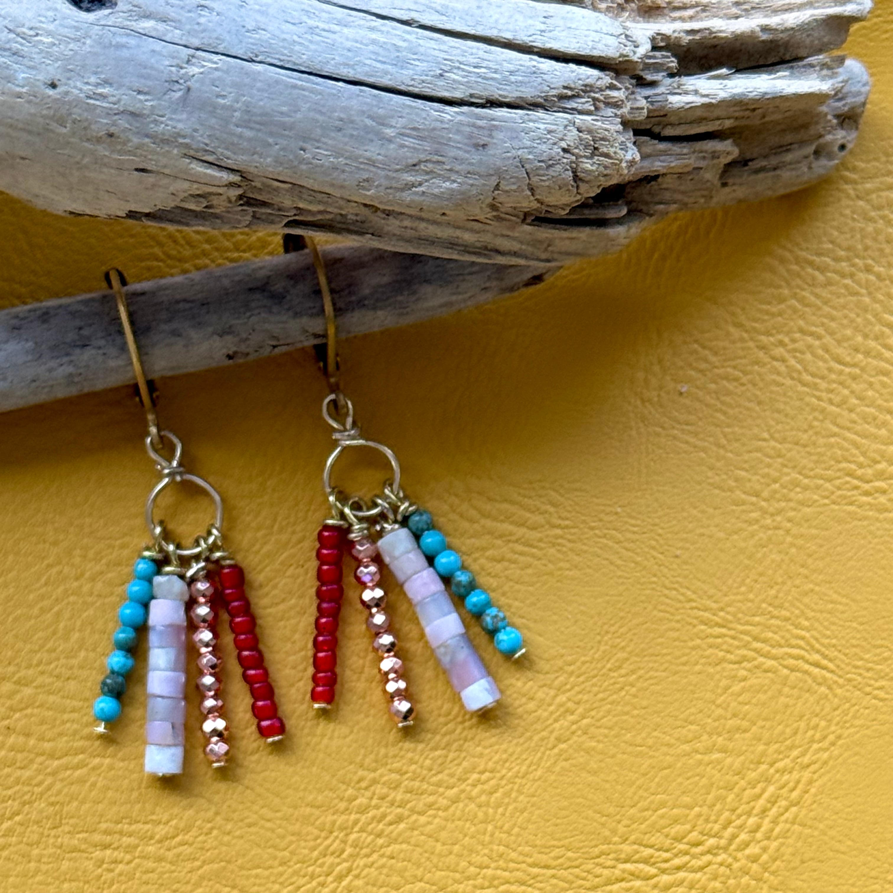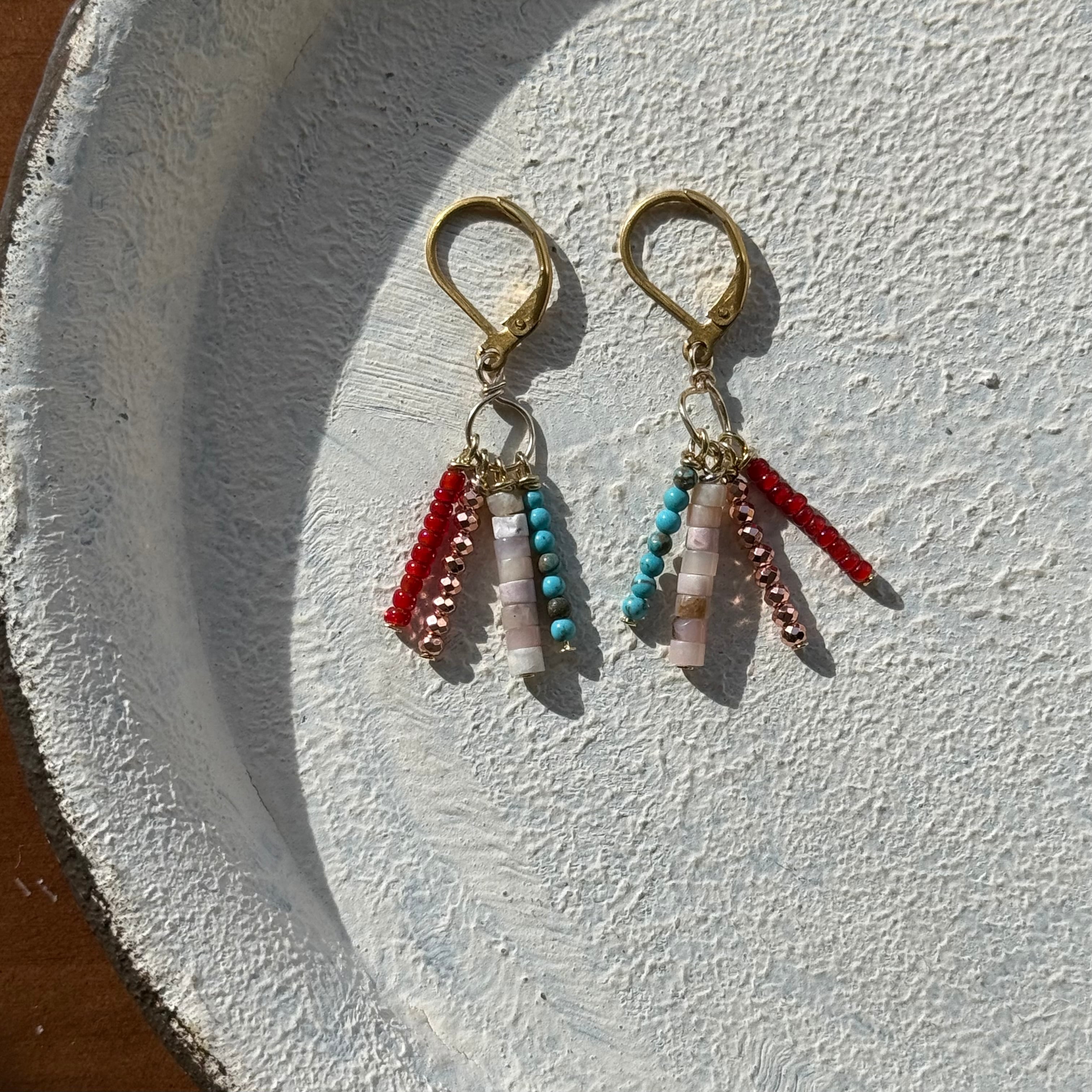 NC26041【サージカルステンレス:ゴールド】ピンクオパール×ターコイズ×ホワイトハーツビーズ ピアス