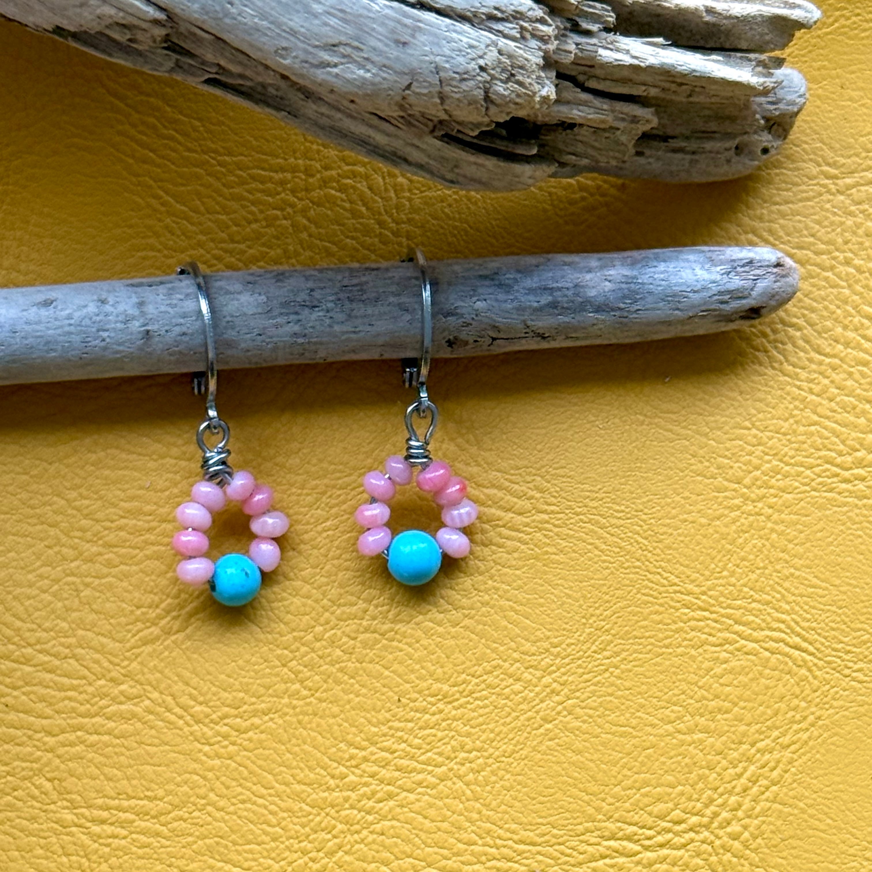 NC26050【サージカルステンレス:シルバー】珊瑚×ターコイズ ピアス