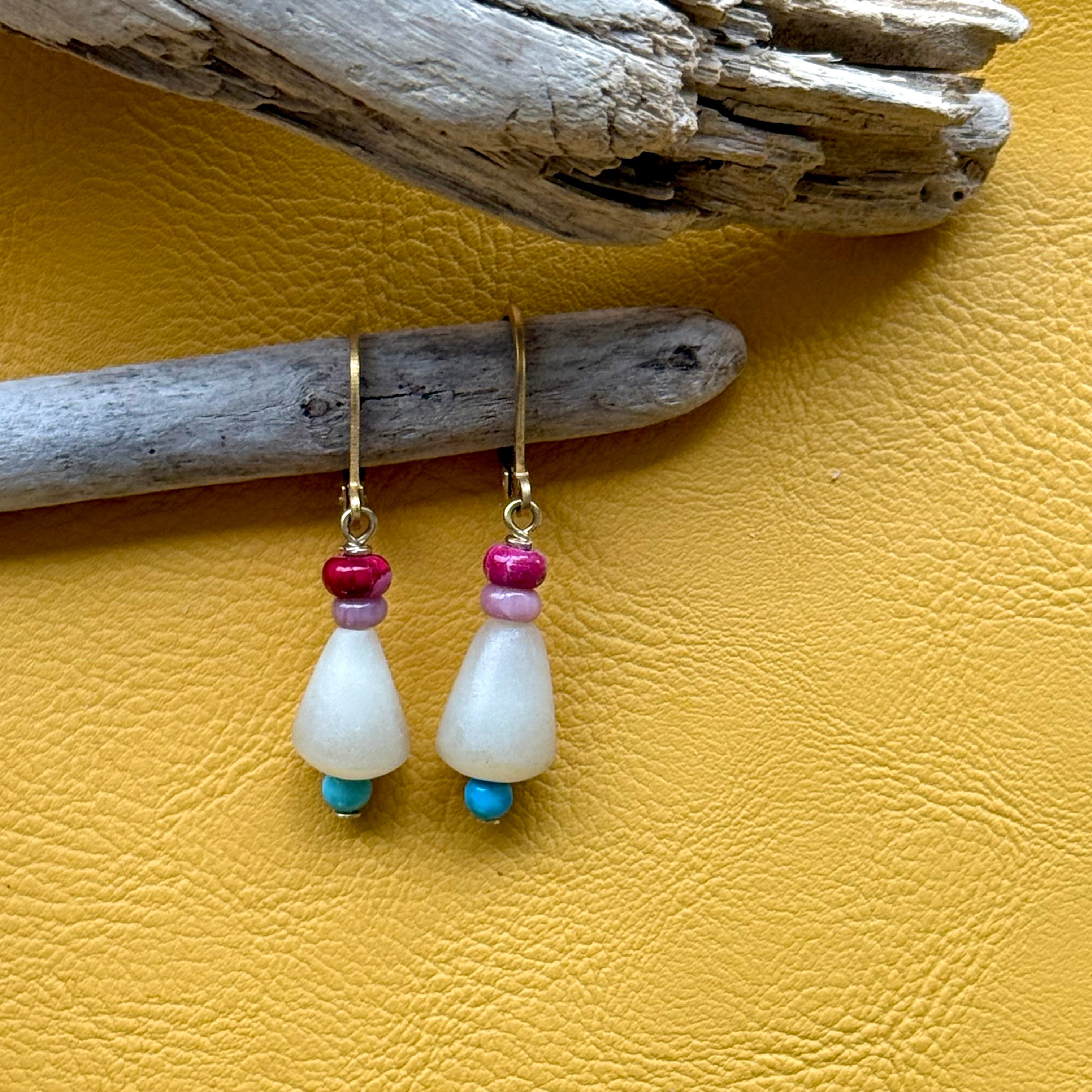 NC26051【サージカルステンレス:ゴールド】パームツリー×レッドカラーカオリン×シリシャスシスト×ターコイズ ピアス