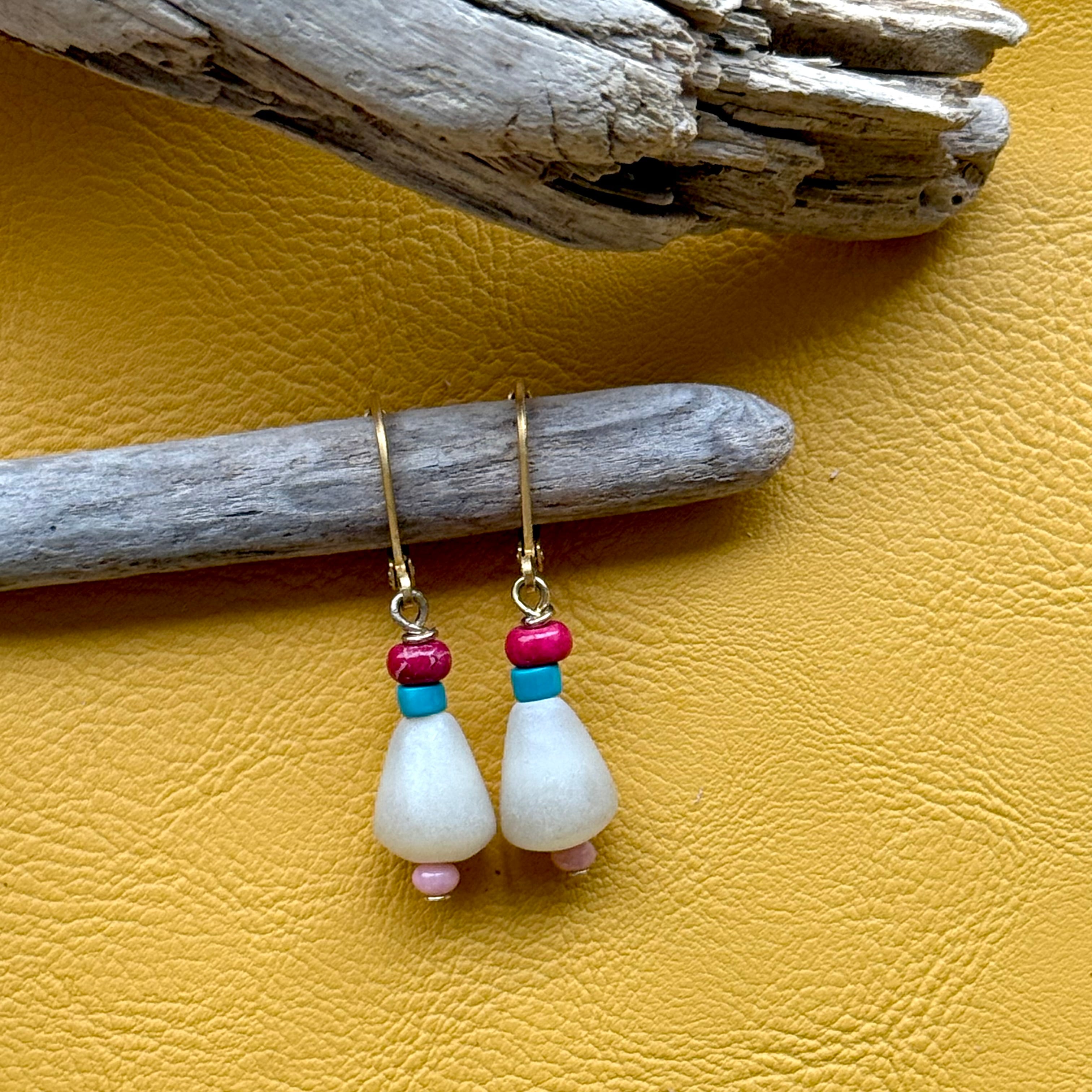NC26052【サージカルステンレス:ゴールド】パームツリー×レッドカラーカオリン×珊瑚×ターコイズ ピアス