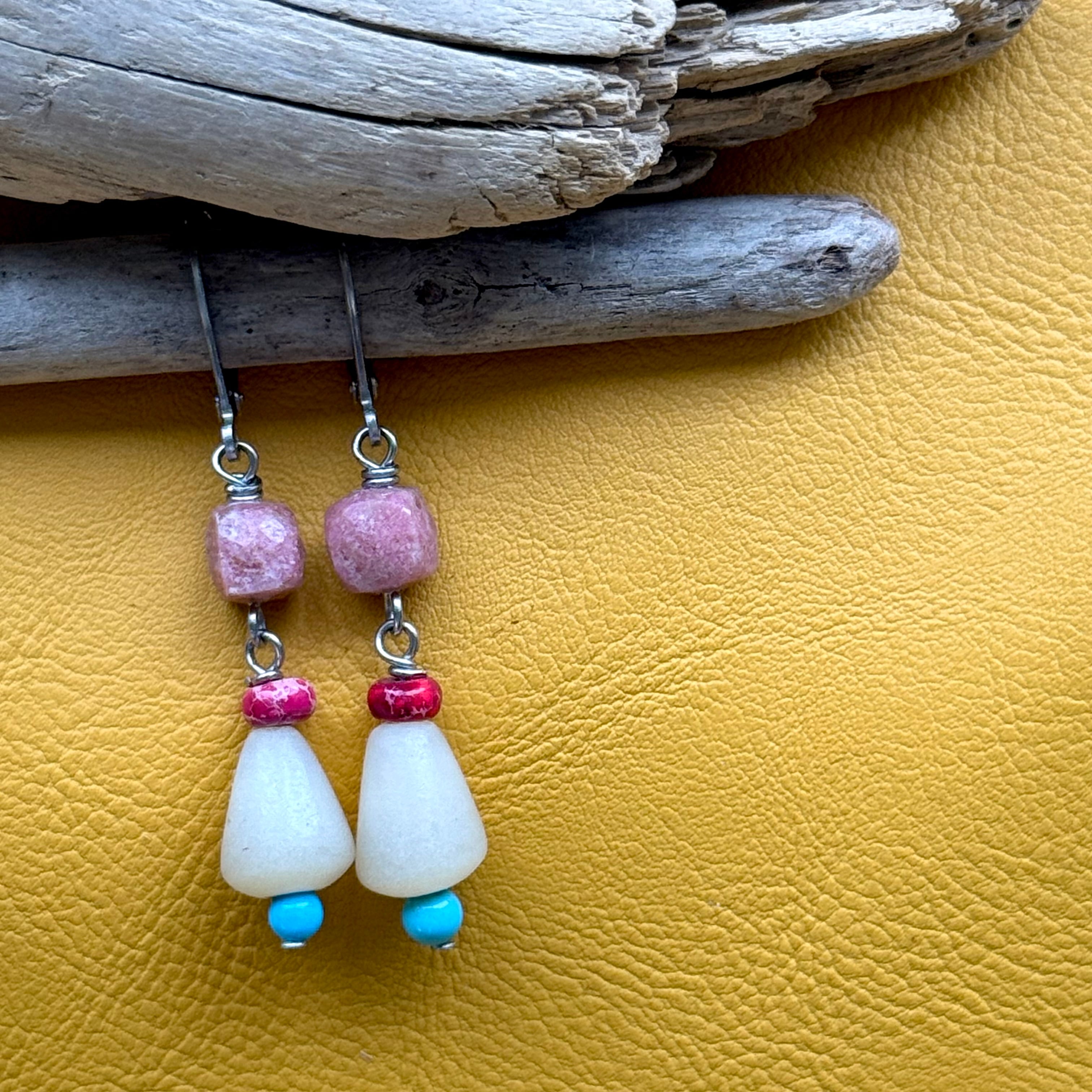 NC26054【サージカルステンレス:シルバー】パームツリー×チューライト×レッドカラーカオリン×ターコイズ ピアス