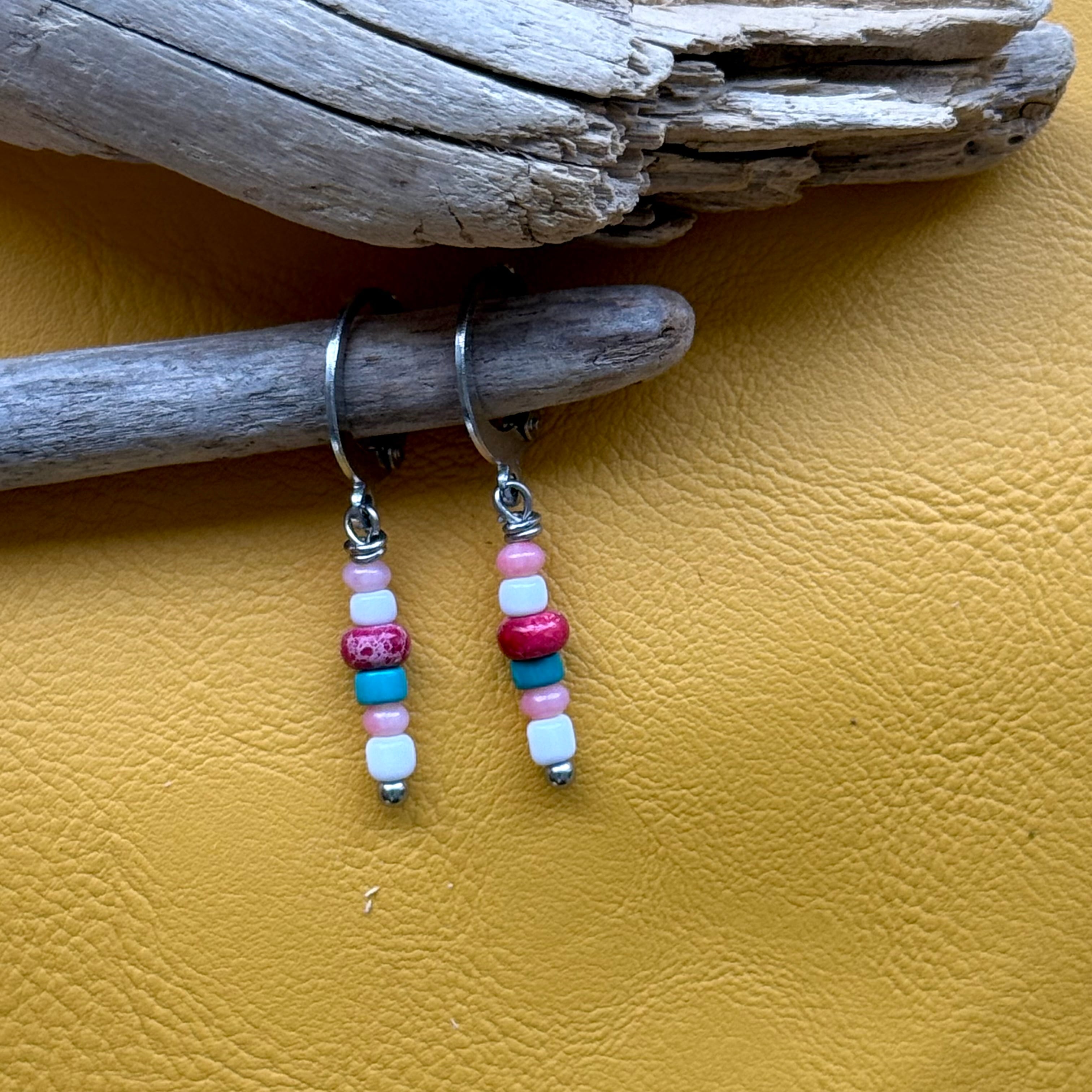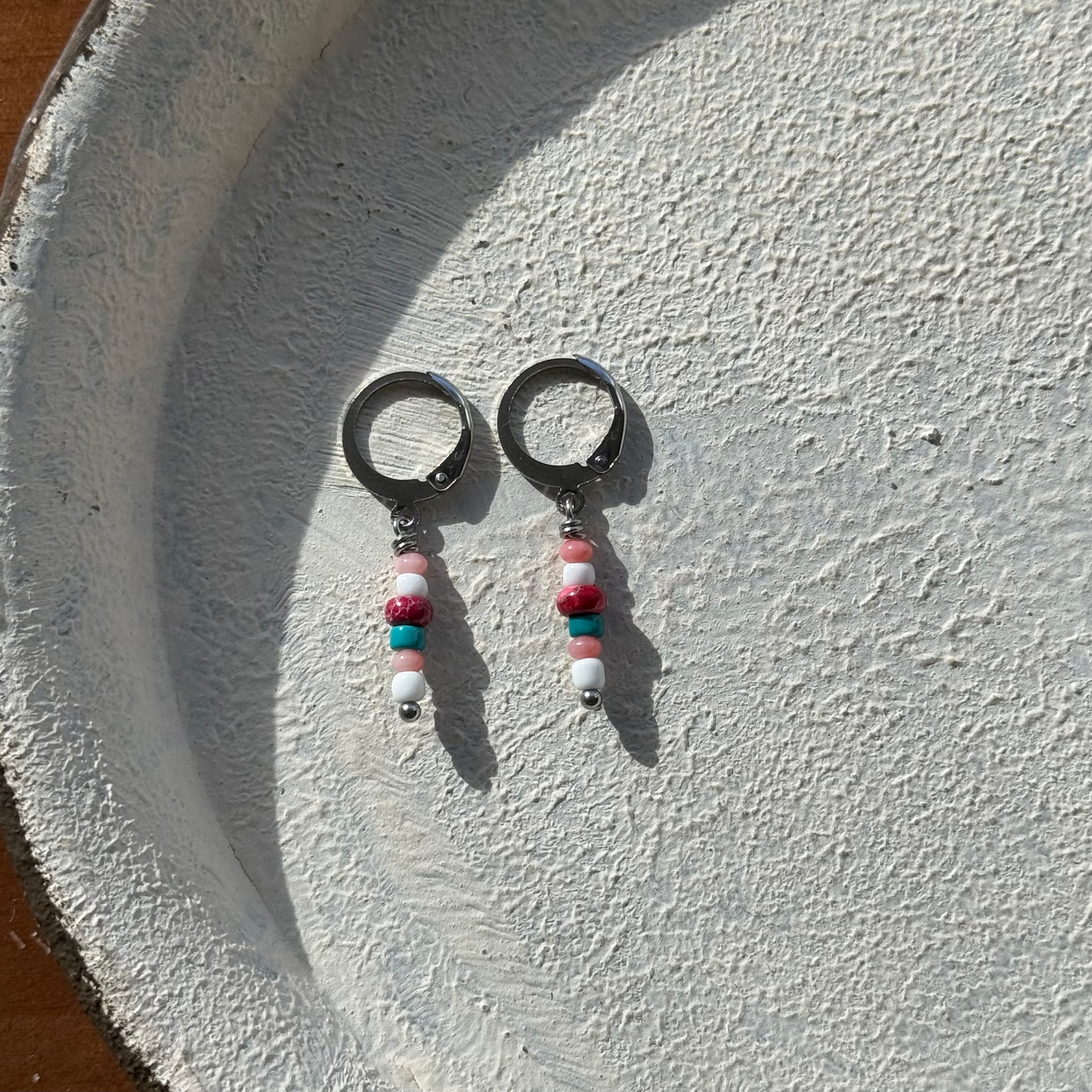 NC26059【サージカルステンレス:シルバー】レッドカラーカオリン×珊瑚×ターコイズ ピアス