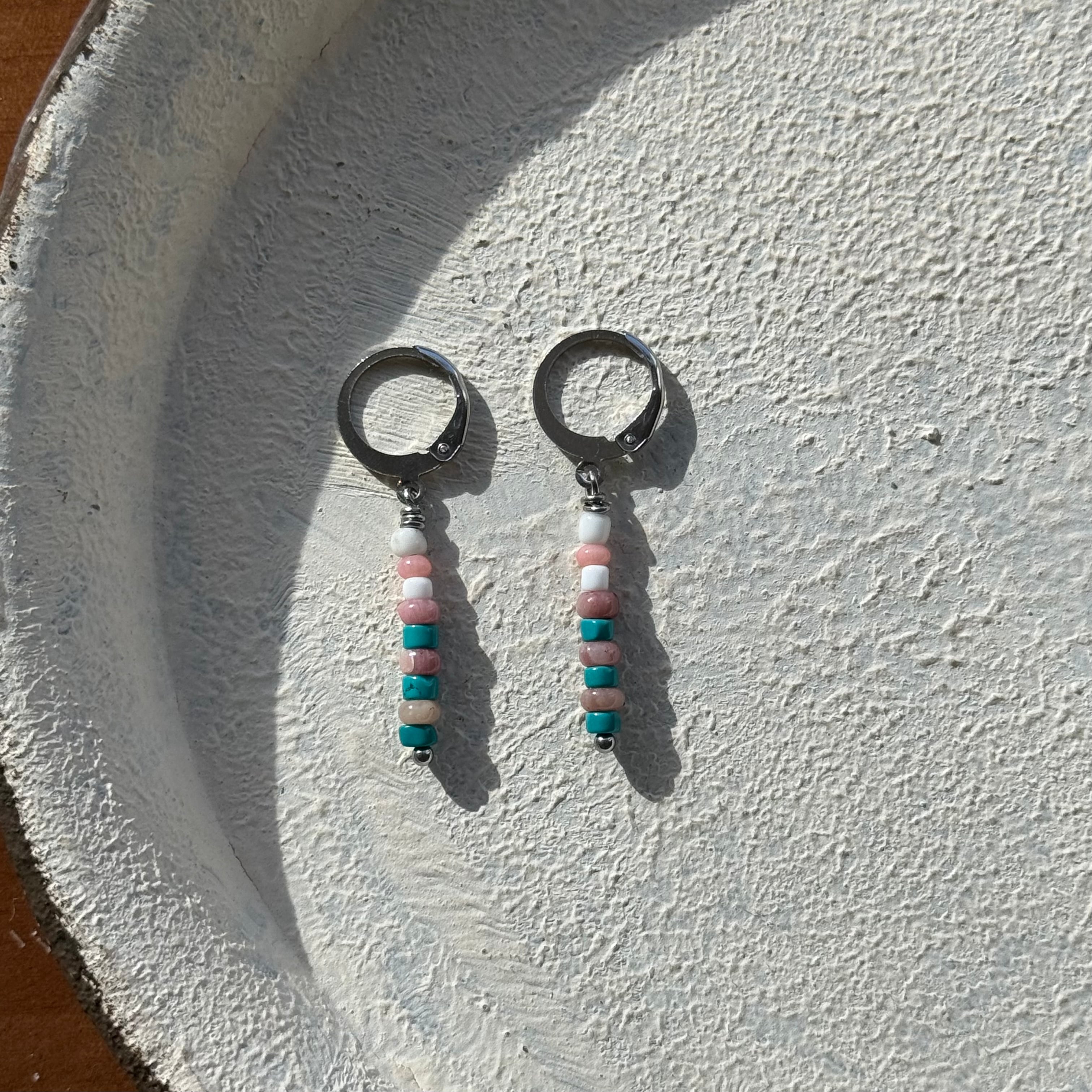 NC26061【サージカルステンレス:シルバー】珊瑚×シリシャスシスト×ターコイズ ピアス