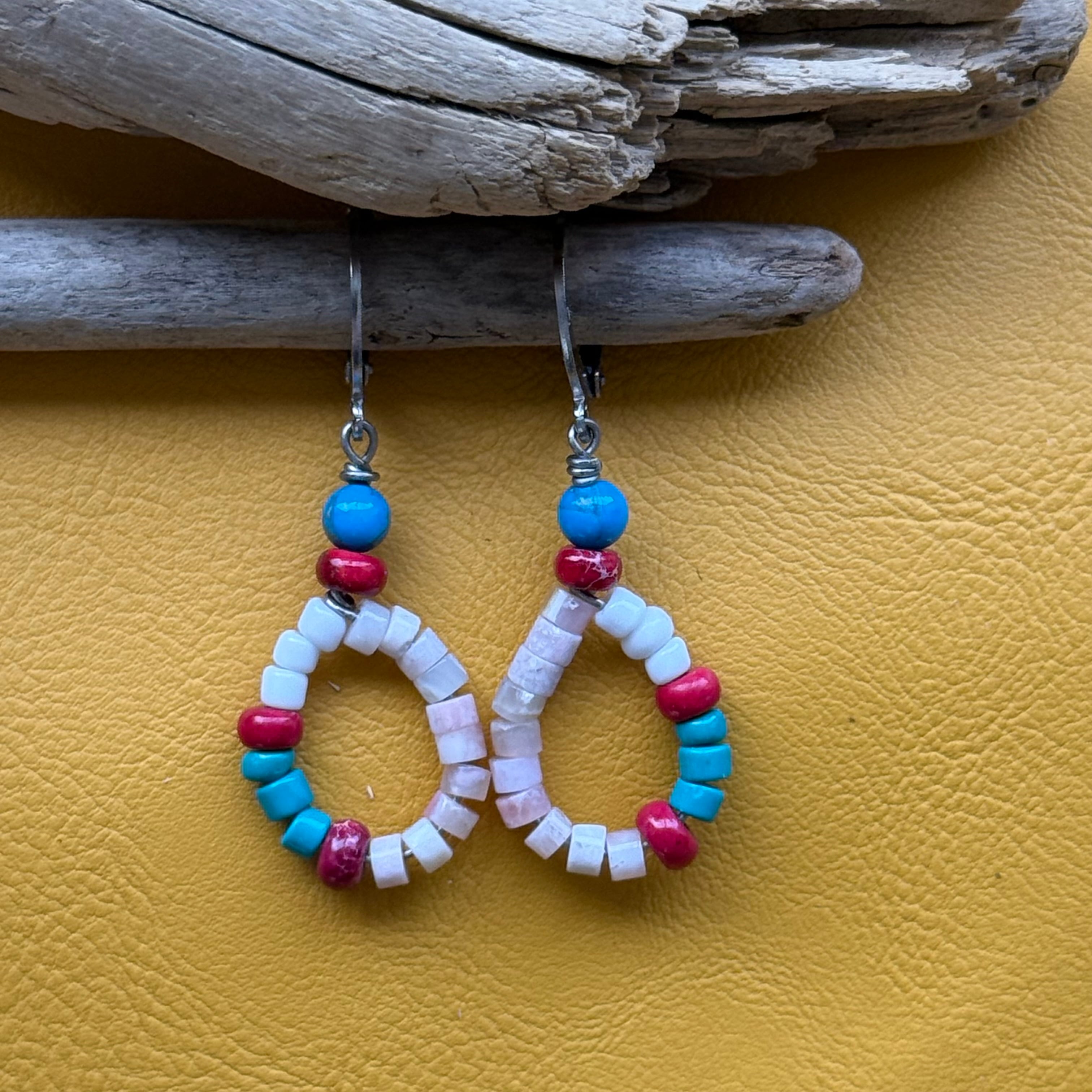 NC26063【サージカルステンレス:シルバー】レッドカラーカオリン×ピンクオパール×ターコイズ ピアス