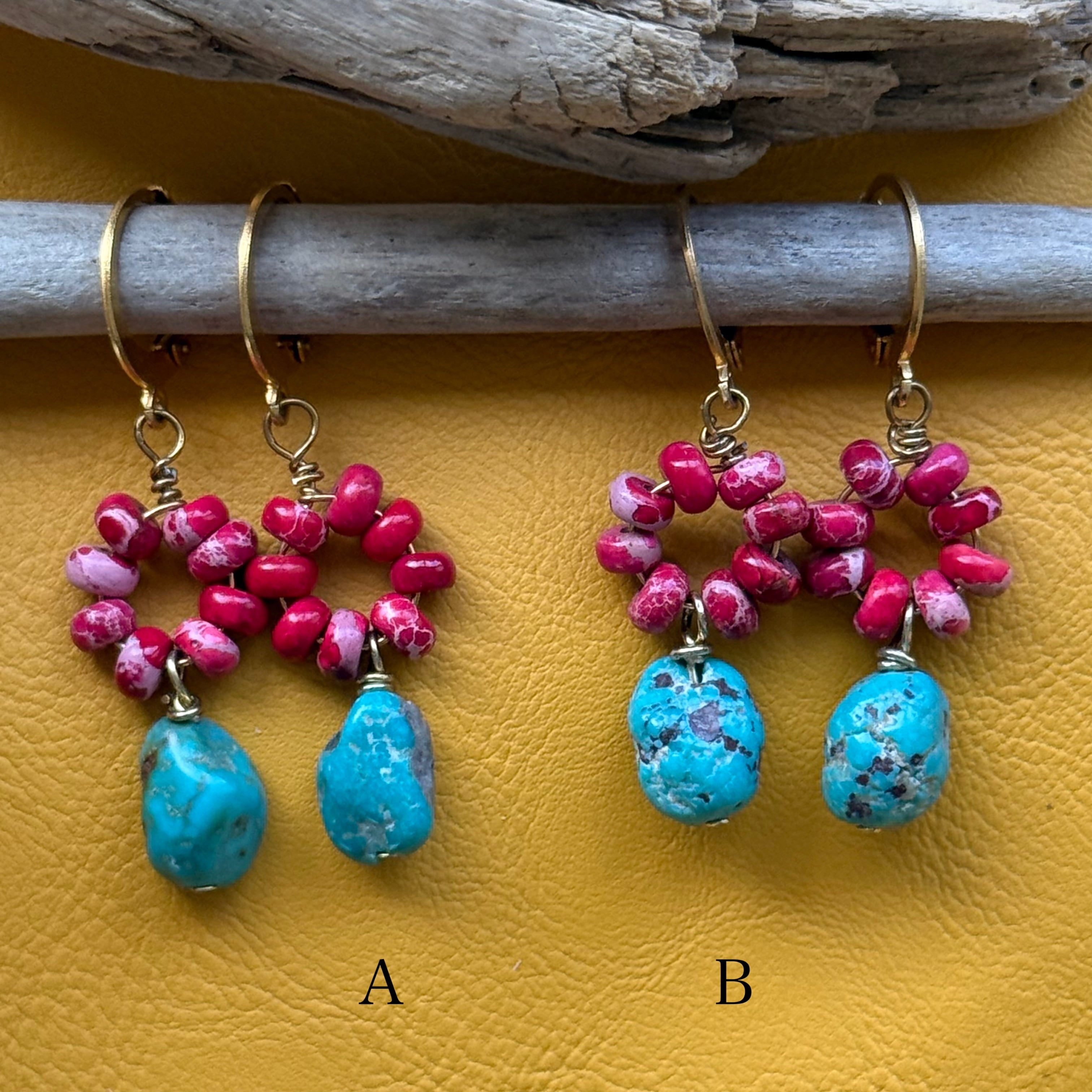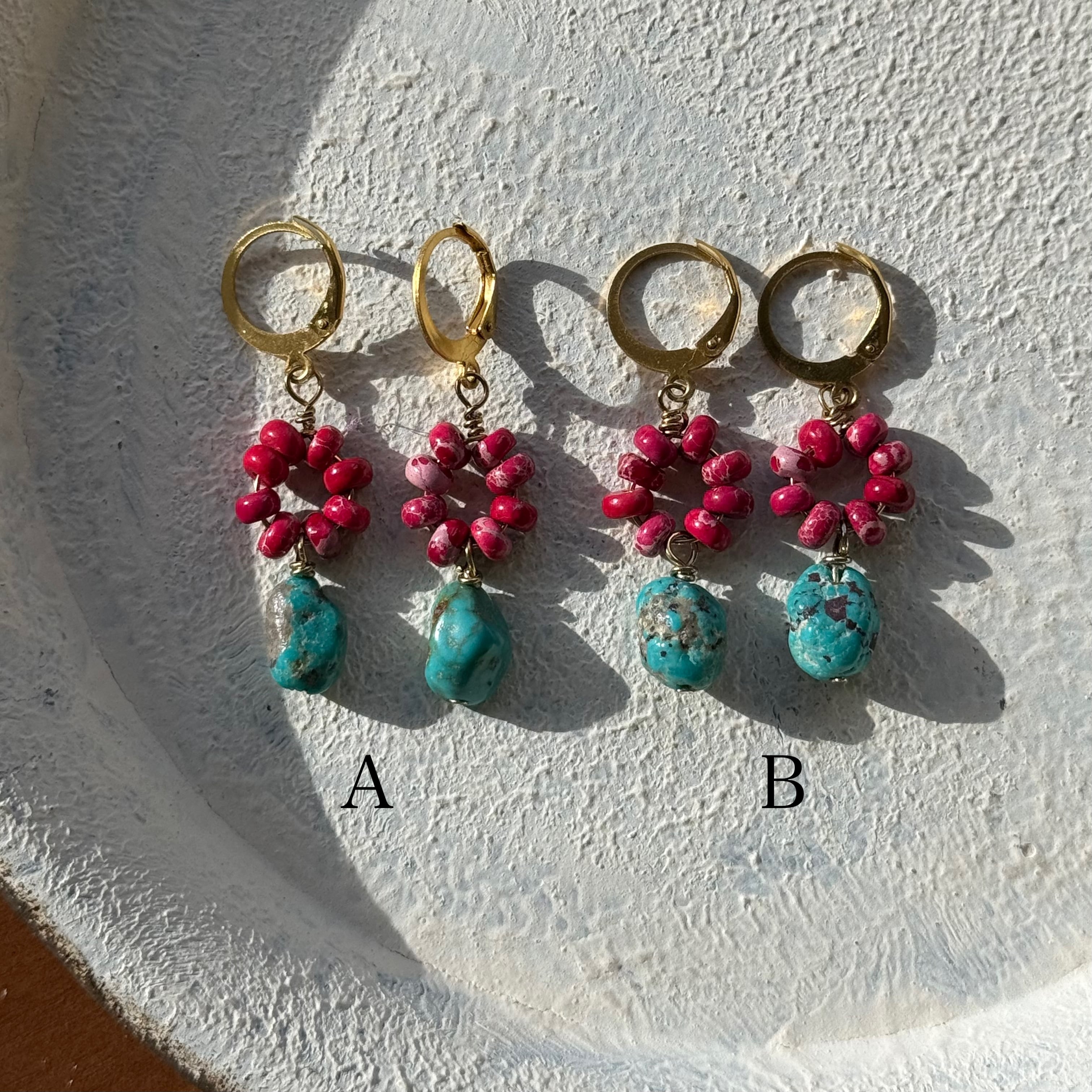 NC26073【サージカルステンレス:ゴールド】レッドカラーカオリン×ターコイズ ピアス